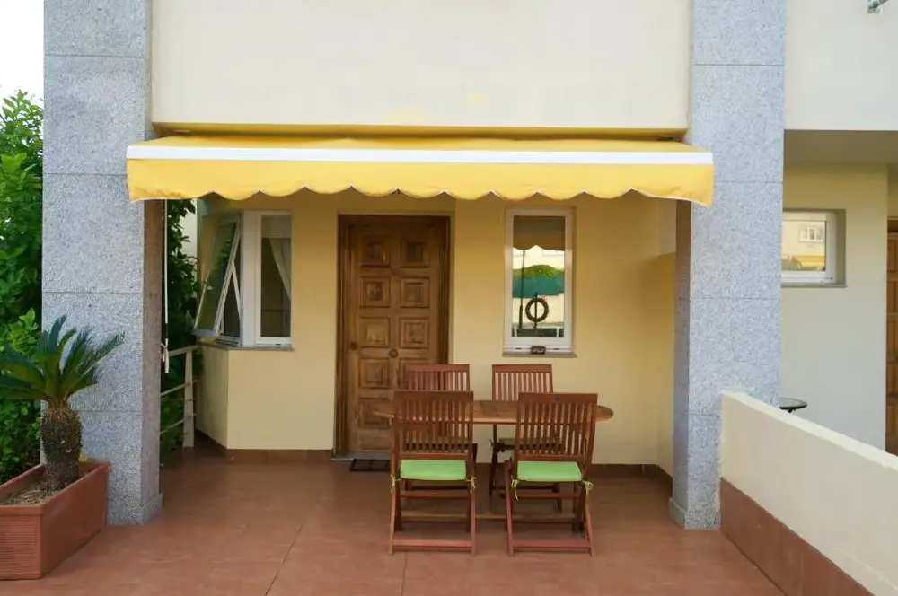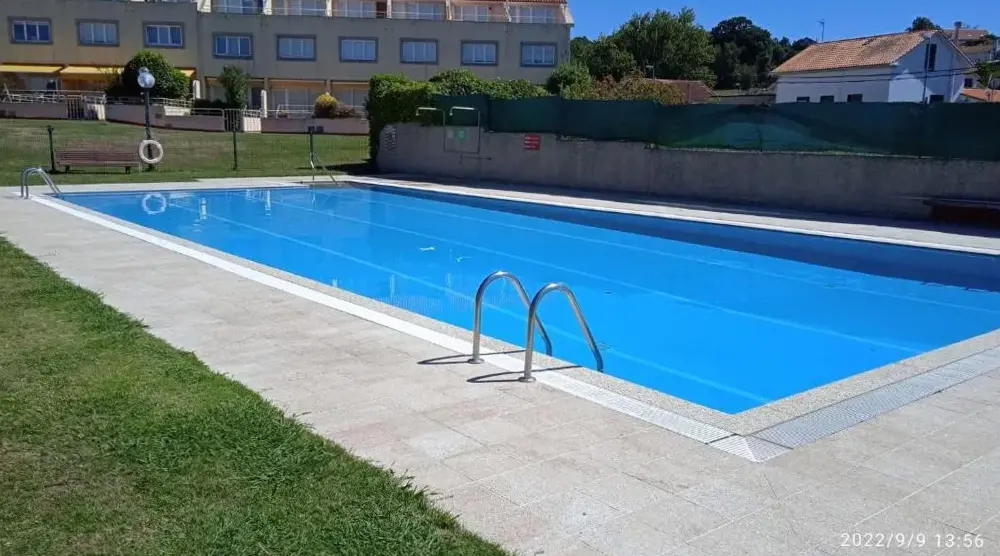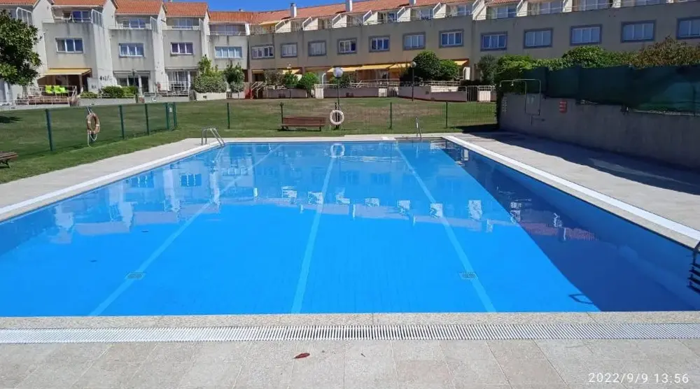 Poolen och grillen ligger två steg från ytterdörren och tre steg från tennisbanan. Bord för middag både inne och ute.